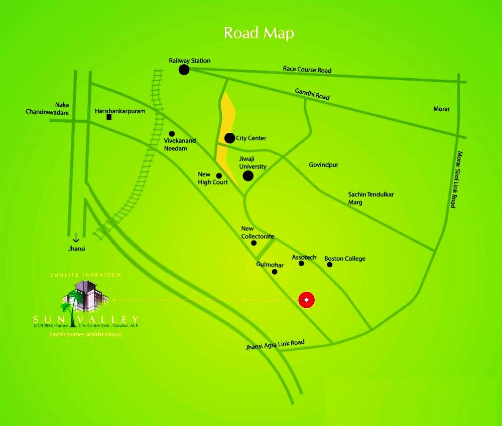 The location is a win-win situation for both the end-users and the investors as it holds great scope of growth in the future. A large number of townships with high-rise towers and plotted developments are coming up in this area. This area holds a promise of manifold price appreciation in ten years hence With a land shortage and skyrocketing real estate prices in most of the other areas of Gwalior provides great alternatives to the people looking out for residential and commercial properties.